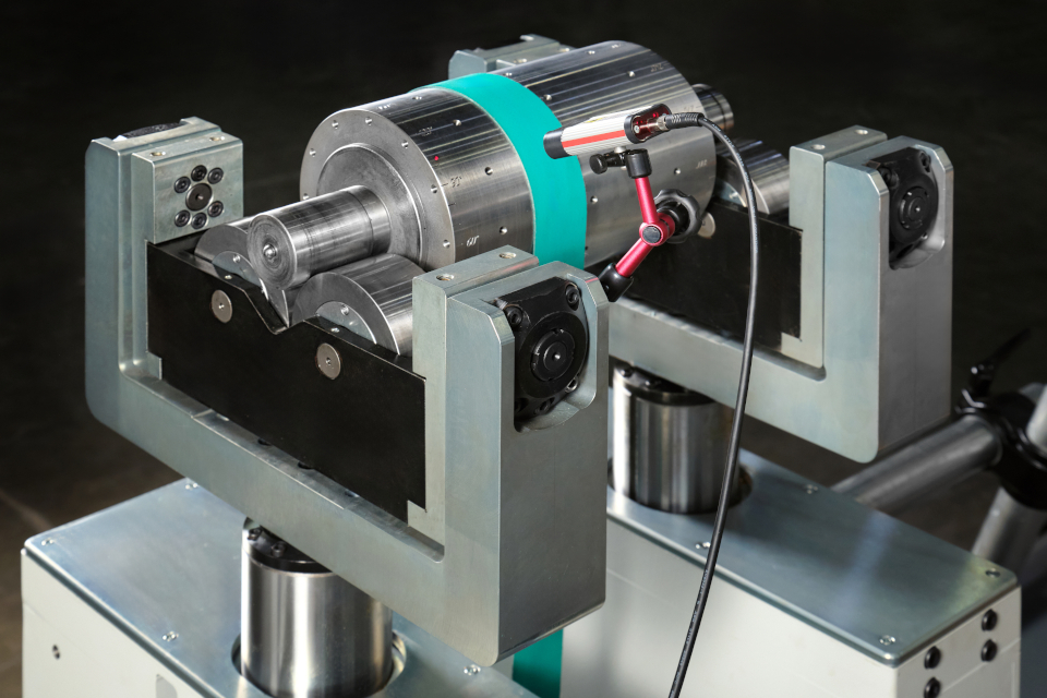 • Опоры с сервоприводами вертикального перемещения для быстрой и аккуратной установки тяжелых роторов на ролики станка.