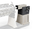 Шпиндель осевого привода имеет продольную подвижность для удобства присоединения к валу изделия и нормально замкнутую пневматическую блокировку этого перемещения.