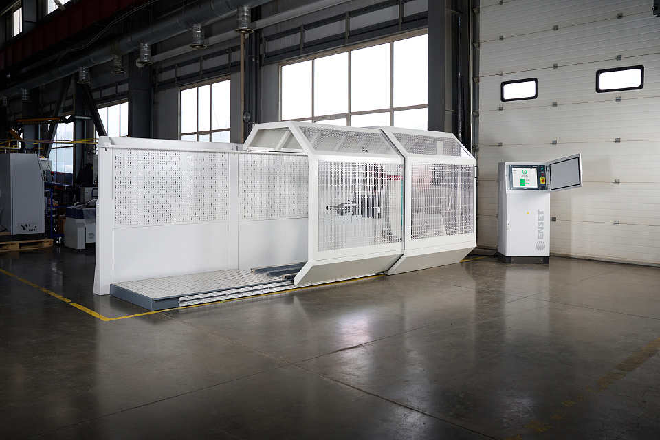 • Заграждение оснащается концевыми выключателями с электромагнитными замками, блокирующими открытие заграждения до окончания вращения изделия на станке.